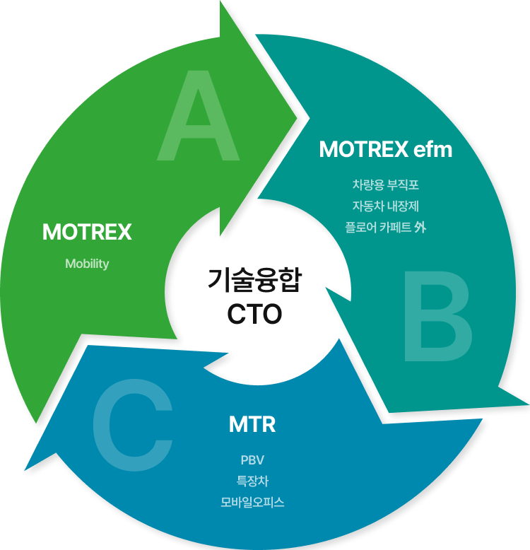 모트렉스 그룹은 계열사의 핵심 역량과 기술을 유기적으로 융합해 급변하는 시장 속에서도 지속적인 경쟁력을 확보하고 있습니다. 특히 그룹 CTO 조직을 중심으로 R&D에 집중하며, 미래형 자동차 인테리어와 모빌리티 공간을 위한 첨단 기술을 개발하고 있습니다. 이를 통해 고객의 삶의 질을 높이고, 새로운 공간 경험을 제공하는 혁신 솔루션을 지속적으로 선보이고 있습니다.