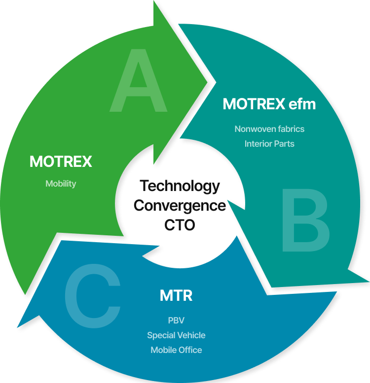 MOTREX Group integrates the core competencies and technologies of its affiliates to maintain competitiveness in a rapidly changing market. Focusing on R&D centered around the Group CTO, the company develops advanced technologies for future automobile interiors and mobility spaces—enhancing quality of life and delivering innovative space experiences.